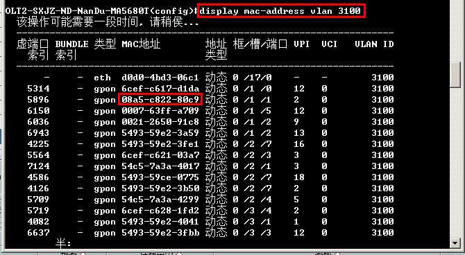 3.1.7查询OLT整机的MAC地址学习数量
