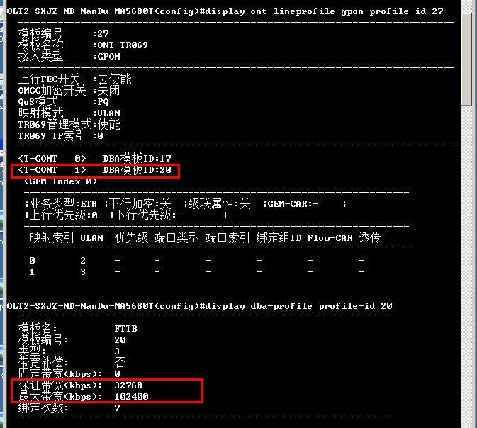 3.1.2查询ONU绑定的DBA模板