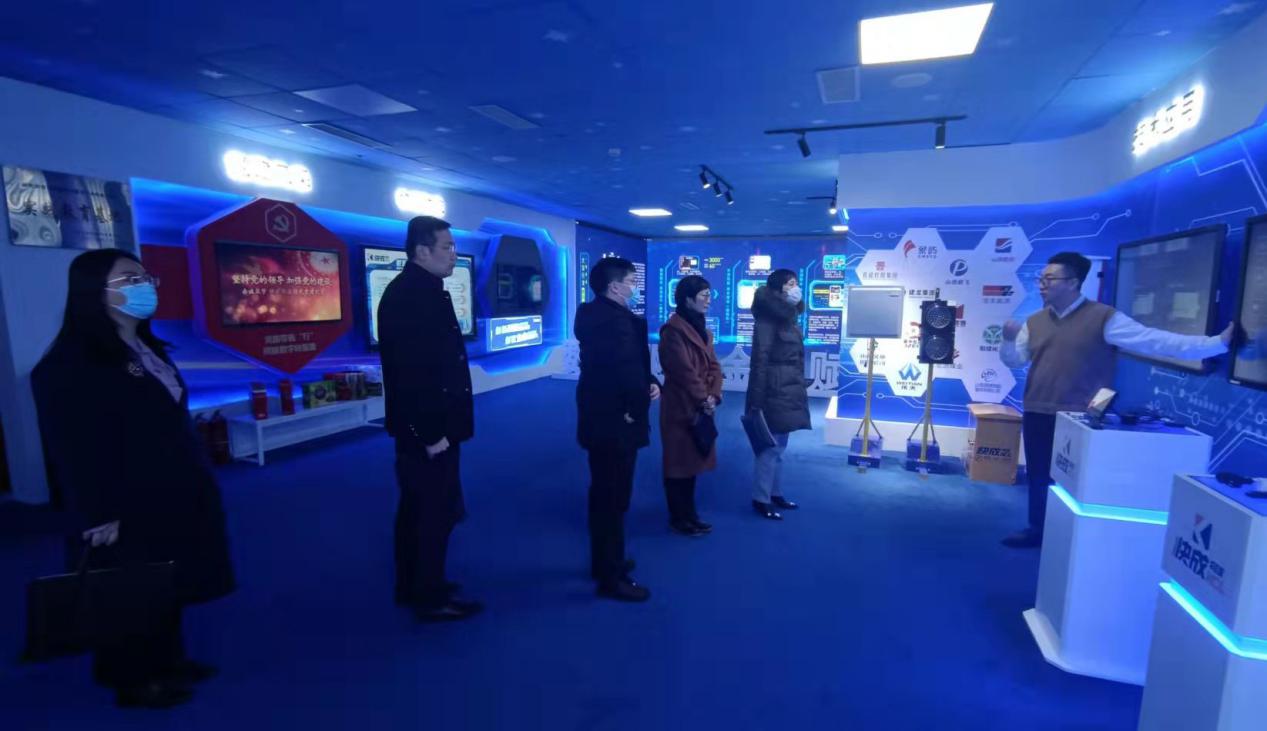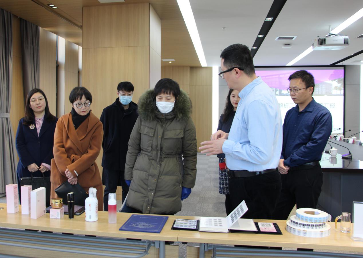 调研组一行现场参观了标识解析应用展示。清控数联承建的综合型二级节点,于2020年8月建设完成并上线运行,目前已接入企业87家,累计标识解析总量75.9万次。标识服务涵盖了煤化工、冶金、高端装备制造等行业,研发了适用于人员生产安全、设备预测性运维、产品溯源体系、产品防窜管理、供应链管理等多种工业场景。现场展示了包括智慧瓶盖、边缘计算网关、可穿戴式智能头盔、设备资产管理系统、正品身份认证系统、商品营销系统等应用,其中,智慧瓶盖置入主动标识,实现开瓶监测,解决企业面临的产品追溯难、产品防伪难、窜货管理难以及开瓶监测难等问题。快成物流承建的全国首个物流行业型二级节点,于2021年4月建设完成并上线运行,目前已接入企业61家,累计标识解析总量665.8万次。现场展示了适用物流行业量身打造的“快慧通”、“快乐驾”等应用,通过车辆信息编码,打通了车辆在途运输与企业到场管理两端的标识互认与解析,实现了货物运输的标识统一,做到“一车一码”、“一物一码”、”一码到底”。