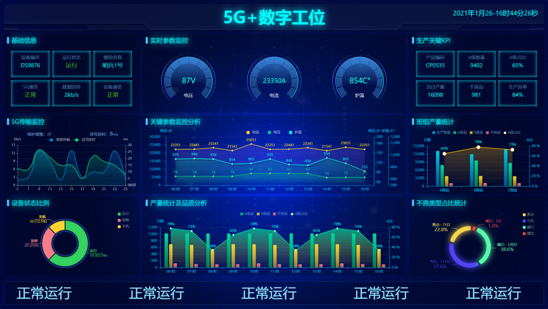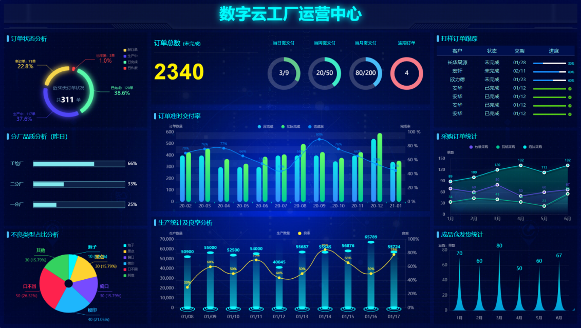 技术特点:基于产业链和消费链的多维夯实数据,通过信息化手段将信息实时、准确的共享出来,对车间产出、不良状况和在制品分布等实时展现,通过管理上的数据化,减少人工统计核算,降低人员在车间查找物料的频率,完善作业流程,减少加工浪费,同时将工艺流程和管理规则映射到系统中,提高执行力和管理质量,优化作业流程,提升产品品质的一次通过率,从而提高作业效率。