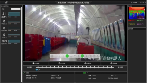 中央变电所巡检机器人采用轨道式引导进行巡检,搭载有本安型“双光谱”云台摄像仪,实现人工巡检的“看”,能够实时采集沿轨道方向的变电所现场情况,实现整体全方位可视化监控。搭载红外测温模组通过捕捉设备辐射的热红外线,能够准确检测设备表面的温度数值,并形成热视图像,直观展示设备温度分布情况,快速定位高温故障点。搭载气体传感器,用于检测环境中一氧化碳、甲烷、硫化氢、氧气等气体浓度,实现超限预警。搭载烟雾探测传感器,检测环境中烟雾浓度,超限预警,防止火灾事故的发生。搭载高清摄像仪,通过视频分析的方式巡检中央变电所现场高压、低馈等设备显示出的运行状态,结合日常巡检内容进行分析报警。综合以上功能实现中央变电所巡检工作的少人化、高效化,提升矿井下人工作业的安全等级。