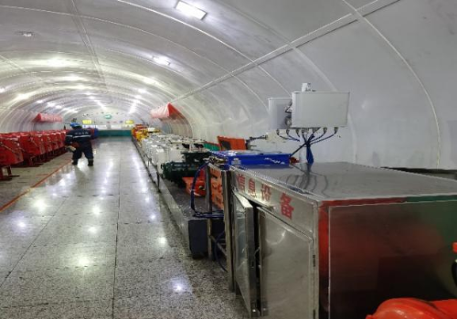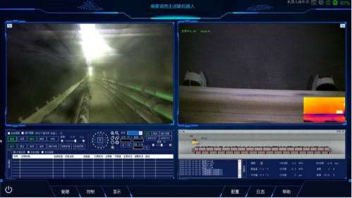 “主运输胶带智能巡检机器人”部署场景位于西主运输胶带一部皮带,机器人本体为隔爆兼本安型设备,采用吊挂轨道式行走的方式运行,轨道安装长度约为1600米。巡检机器人可自动巡检、自主充电,实时采集、存储、传输现场的图像、声音、温度、烟雾等数据,通过对数据的分析,判断是否存在设备故障以及故障位置,实现声音异常识别功能、红外热像图采集及温度异常报警功能、移动图像采集、环境探测、自主避障、人员闯入报警等功能。