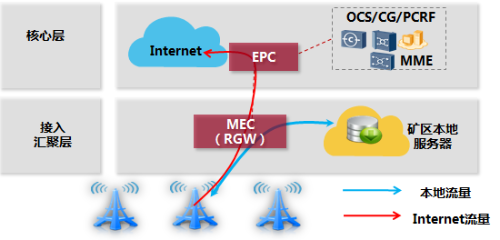 (2)MEC:提供园区5G业务数据分流,通过MEC使得数据流指向本地,不出园区。
