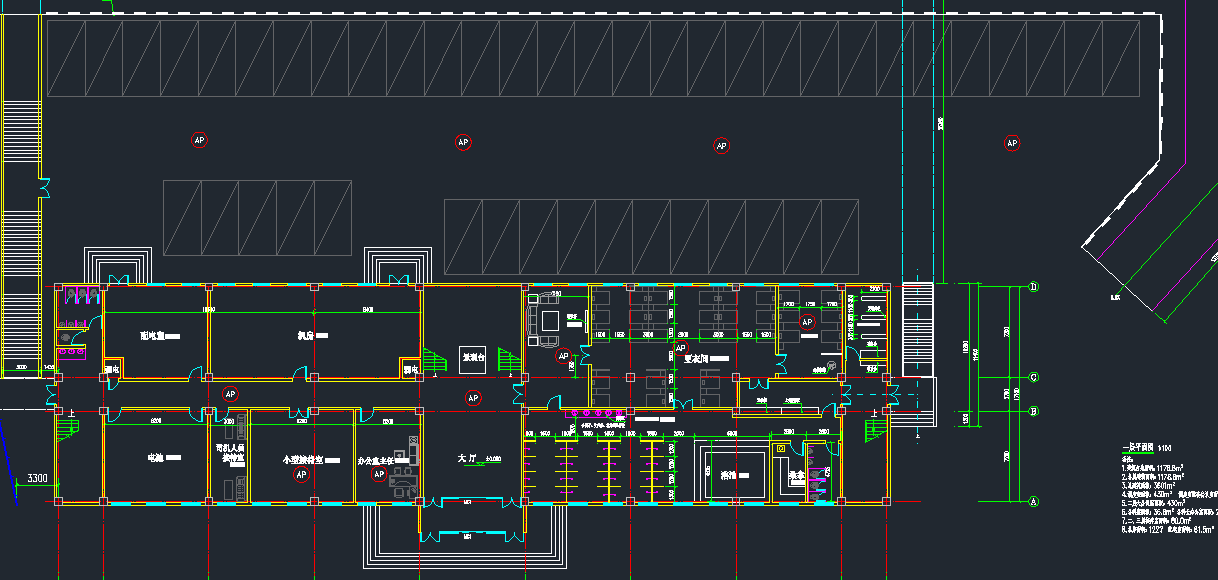 调度楼:1层在走廊、大厅、小型接待室、办公室主任办公室、更衣间、更衣6人间、茶水间各部署1个吸顶AP,共7个;2层在走廊、接待室各部署1个吸顶AP,机电科长、机电科、安全科长等12间办公室各部署1个面板AP,大会议室部署2个高密AP,共2个吸顶AP、12个面板AP、2个高密AP;3层在走廊、接待室各部署1个吸顶AP,数智化办公室、调度主任、调度副主任等7间办公室各部署1个面板AP,调度中心、会议室各部署1个高密AP,共2个吸顶AP、7个面板AP、2个高密AP。